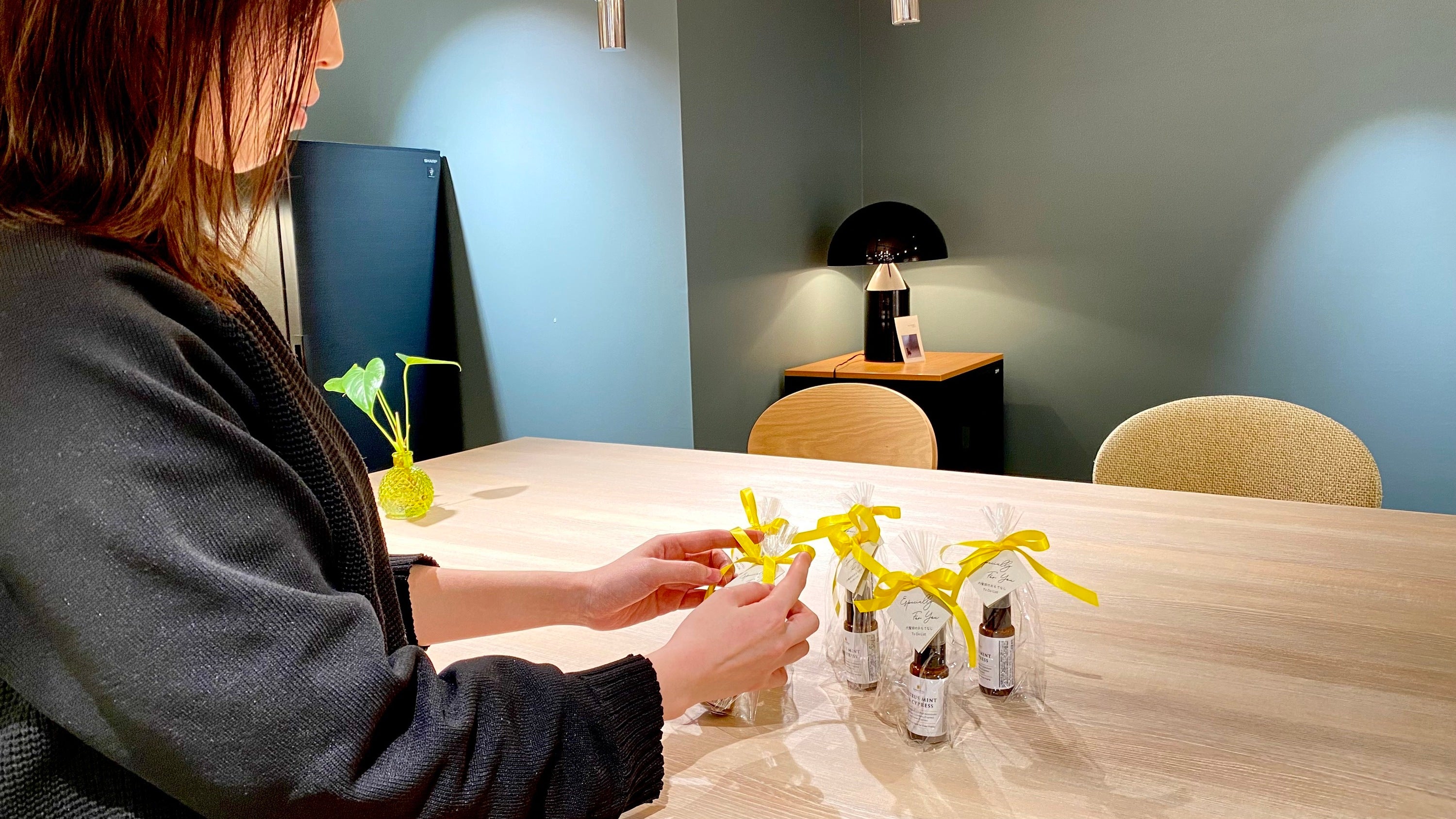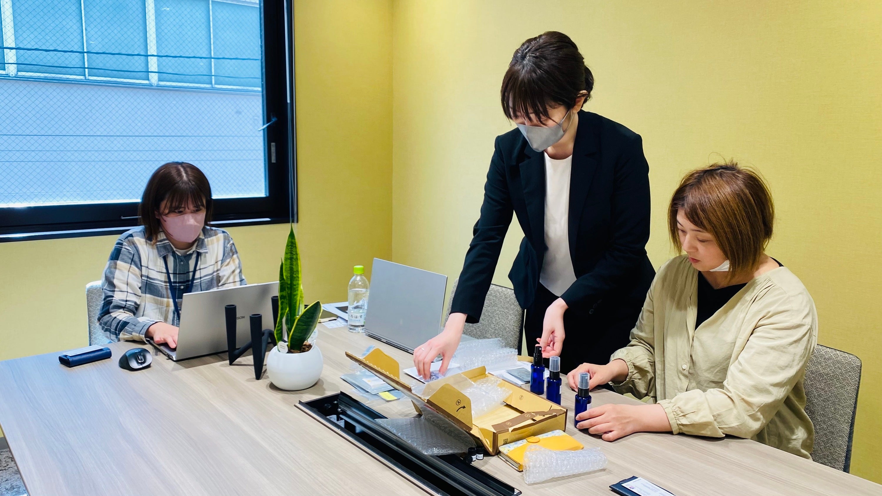 休憩スペースでコーヒーを片手にポロっとはじまった代表の「そんなサービスあったらおもしろくない?」から、元人気インテリアショップでインテリア統括をしていたアロマの知識があるスタッフや、とにかくアロマ好きなスタッフなど7名のメンバーが自発的に集まり、2023年1月、部署横断の「香りプロジェクトチーム」が発足しました。