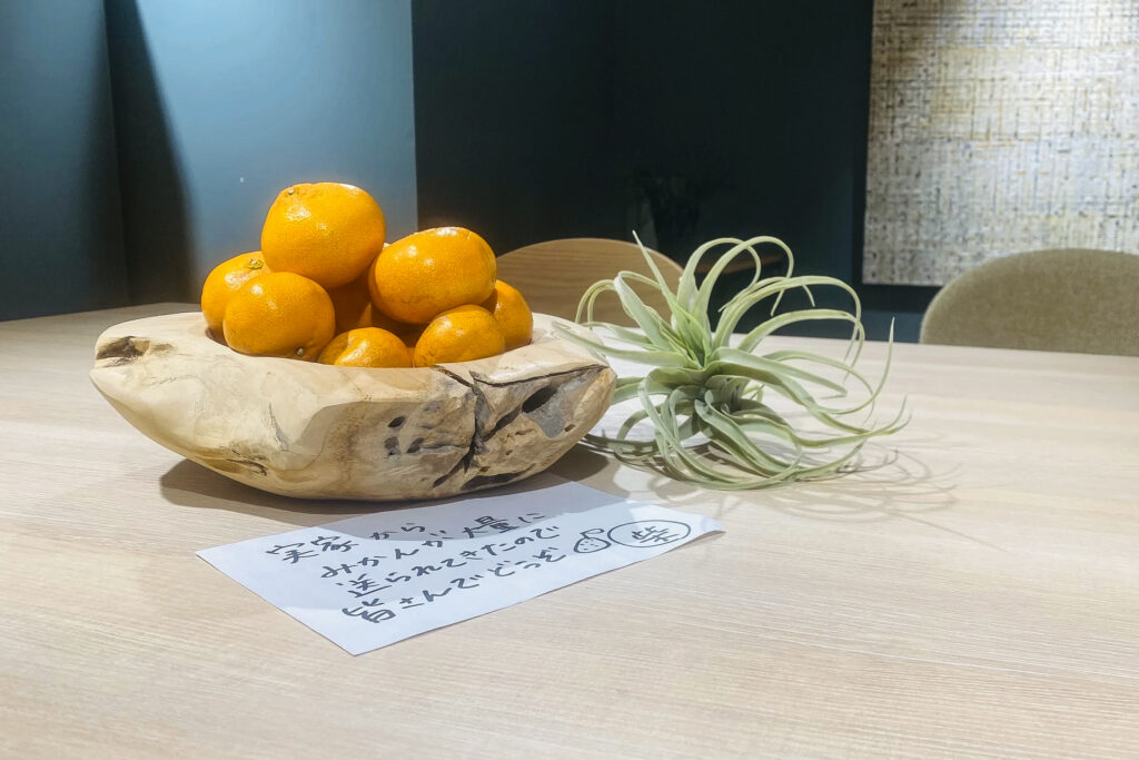 そう言って、紙袋いっぱいのみかんをそのまま置くのではなく、お洒落なウッドボウルにトコトコ積んでくれて。(こういうちょっとした気づかいもサマンサらしくて好きなところ)