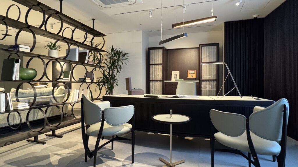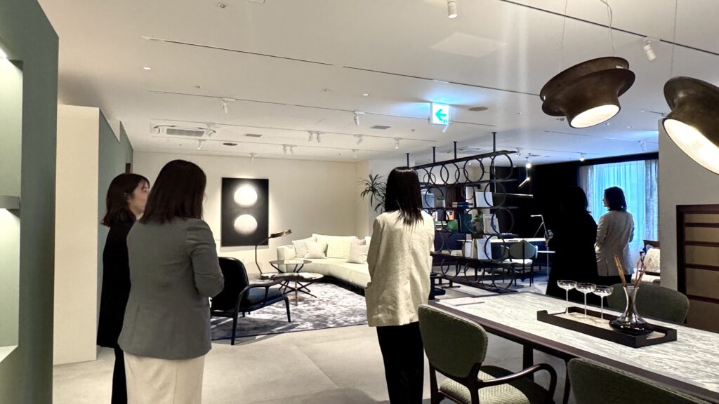 サマンサからは主に、空室ホームステージング部門のインテリアプランナーが参加。ブランドの歴史やトレンドを座学で学んだ後、代表作や新作などの展示品を実際に見たり触れたりしながら詳しく解説していただくという、貴重な研修機会をいただきました。